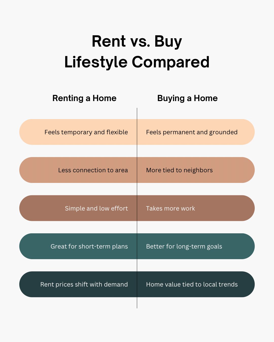 Flexibility matters. If you expect job changes, relocation, lifestyle shifts, or you’re not ready to commit to a house for years, renting gives you that freedom.